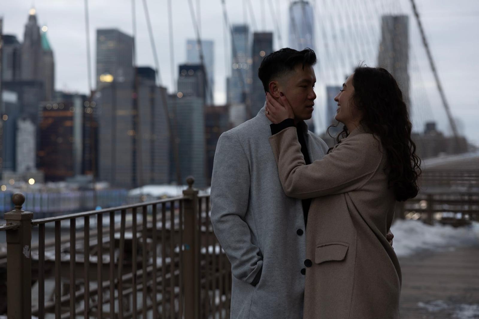 January 30, 2025That winter, the skating rink beneath the Brooklyn Bridge became our place. On one last visit before the season ended, Kristine was teaching Stephen how to stop while skating when he got down on one knee and asked the question. It was unexpected; it felt like the perfect ending to a place that had meant so much to them.